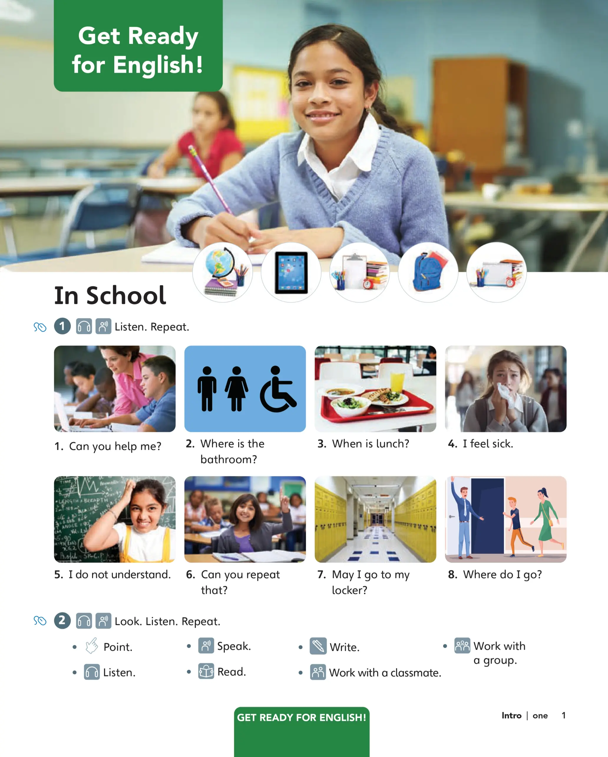 In Get Ready! students develop essential language and literacy skills as well as academic concepts and vocabulary. A brief introductory lesson is followed by 10 units. Watch the walkthrough video or scroll down to dive into a unit!